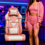 صندلی گیمینگ صورتی سفید درجه یک ۲۴ ماه ضمانت